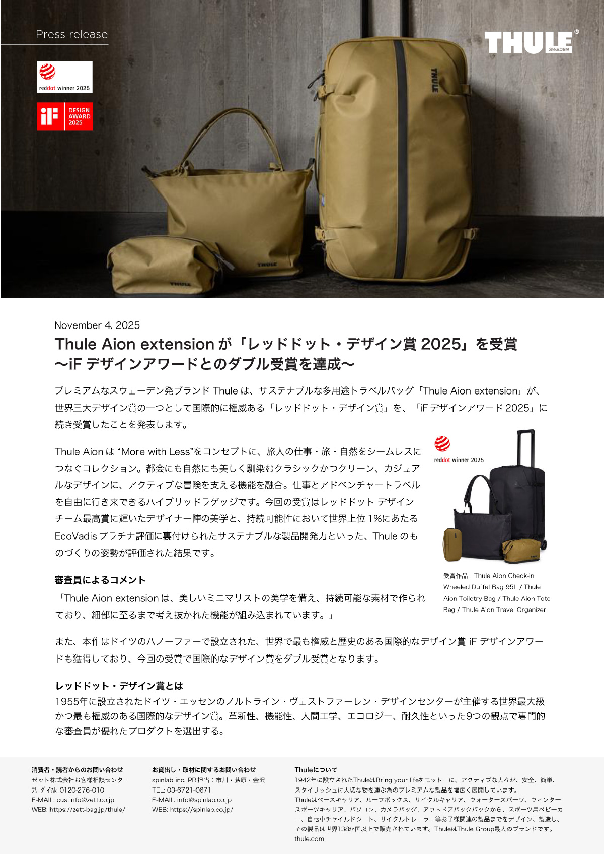 Thule Aion extensionが「Red Dot Design Award 2025(レッドドット・デザイン賞)」 を受賞しました。